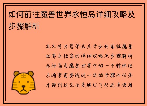 如何前往魔兽世界永恒岛详细攻略及步骤解析