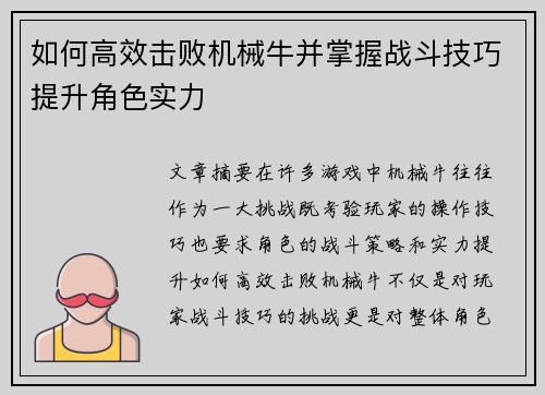 如何高效击败机械牛并掌握战斗技巧提升角色实力