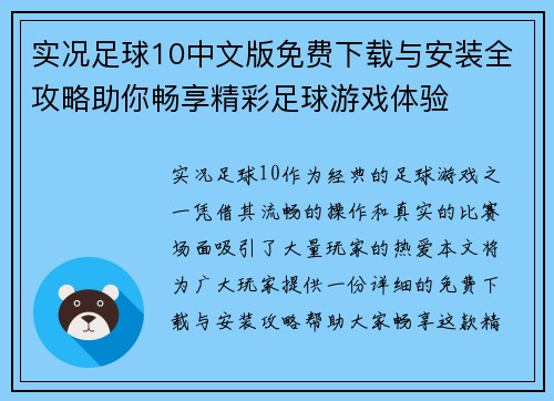实况足球10中文版免费下载与安装全攻略助你畅享精彩足球游戏体验